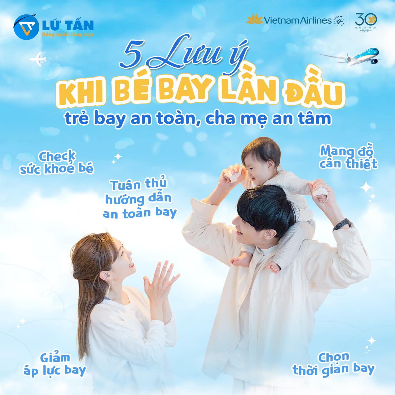 Đưa em bé đi máy bay lần đầu là điều mà hầu hết các bậc cha mẹ đều lo lắng. Tuy nhiên, chỉ cần lên trước kế hoạch và chuẩn bị thật kỹ lưỡng với 1 vài lưu ý dưới đây từ Vietnam Airlines và Lữ Tấn Travel, chuyến đi cùng bé sẽ thật an toàn và trọn vẹn đấy: