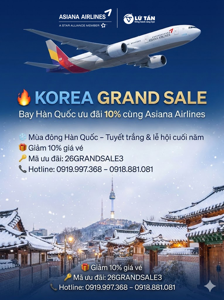 Số lượng vé ưu đãi có hạn và thường được săn đón rất nhanh. Hãy liên hệ ngay với Lữ Tấn Travel – Đại lý chính thức của Asiana Airlines để được hỗ trợ áp mã giảm giá nhanh chóng nhất!