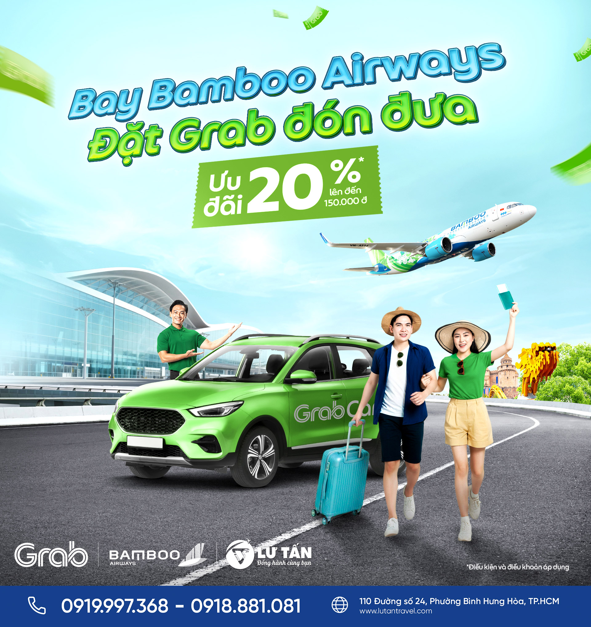 Lữ Tấn Travel – đại lý chính thức của Bamboo Airways – luôn sẵn sàng hỗ trợ quý khách săn vé máy bay giá rẻ và hướng dẫn chi tiết cách sử dụng mã ưu đãi Grab để hành trình của bạn thêm phần trọn vẹn.