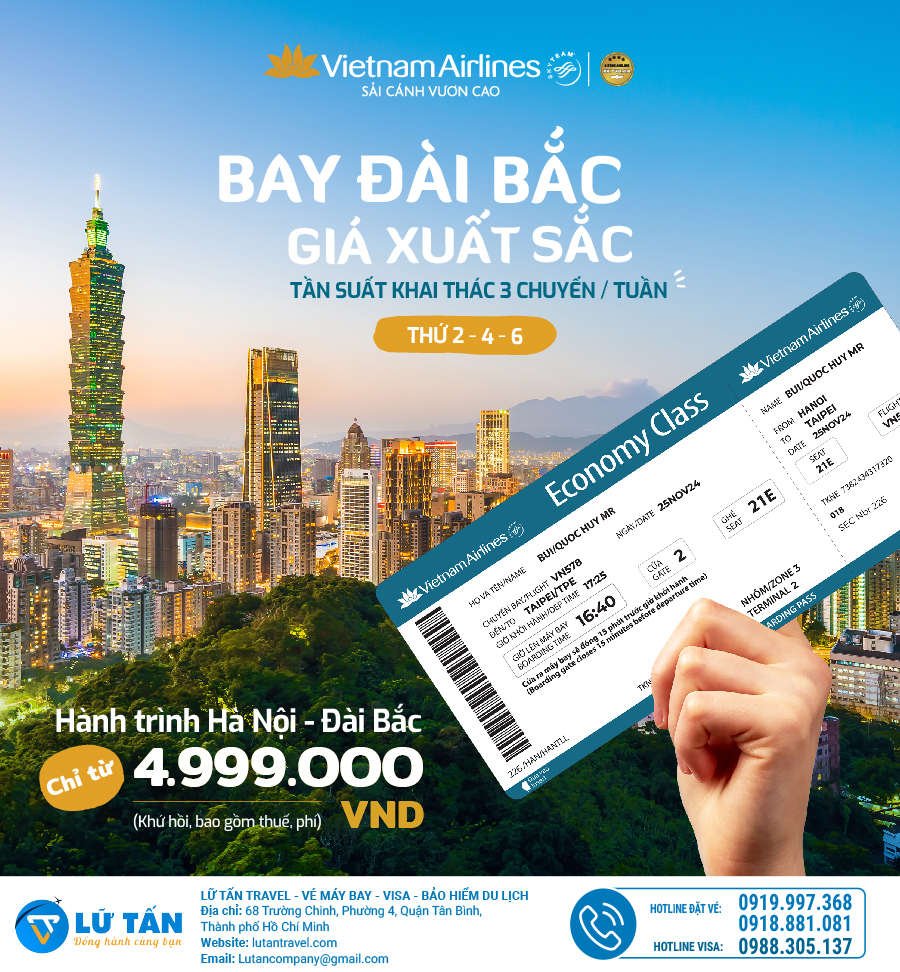 Nếu bạn đang tìm kiếm địa chỉ uy tín để đặt vé máy bay cho chuyến đi Đài Loan dịp này, hãy liên hệ ngay với Lữ Tấn Travel. Chúng tôi chuyên cung cấp dịch vụ Booking vé máy bay - Visa - Bảo hiểm du lịch, đảm bảo bạn sẽ nhận được sự tư vấn tận tâm và hỗ trợ tốt nhất để có một chuyến đi hoàn hảo.