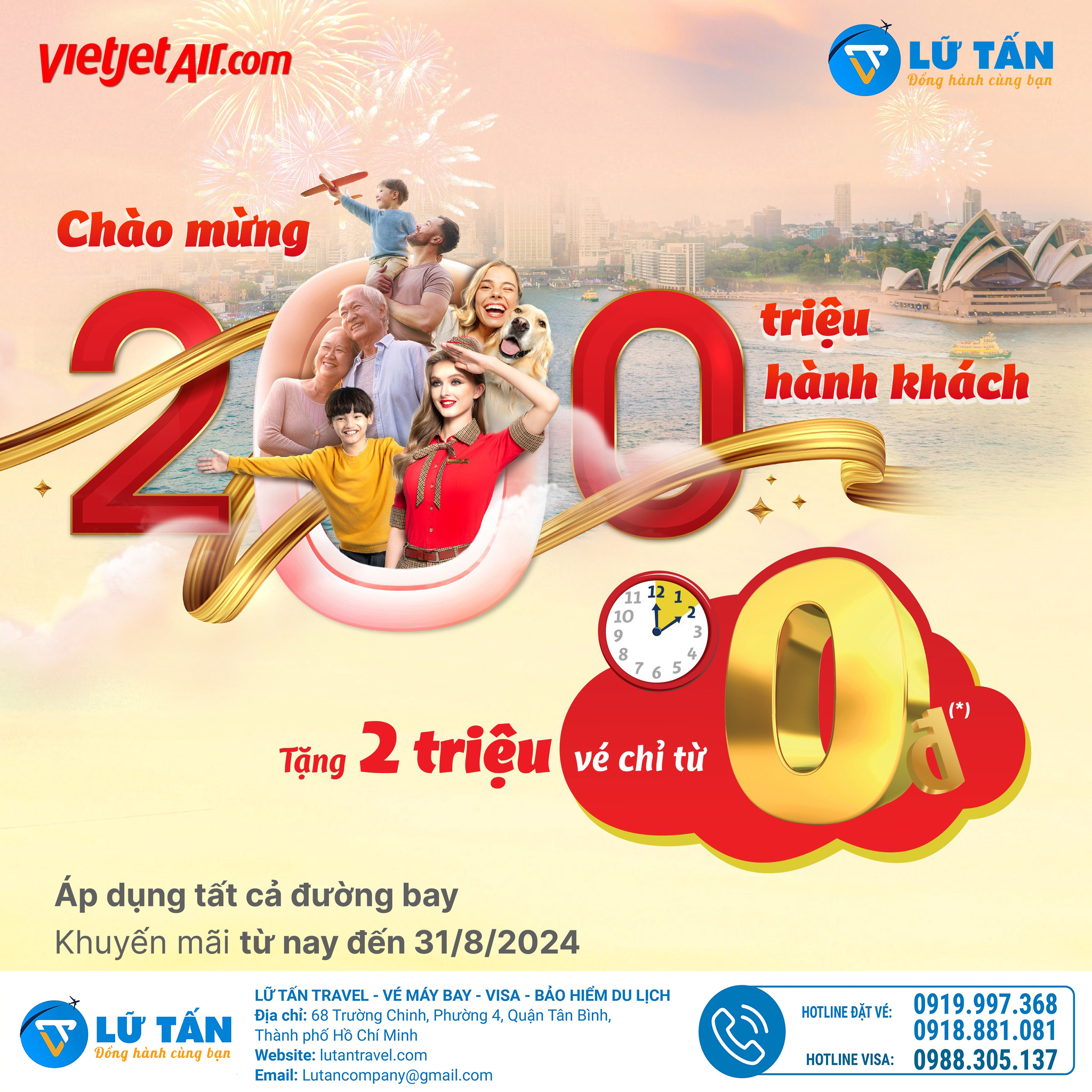 CHÀO MỪNG 200 TRIỆU HÀNH KHÁCH - TẶNG 2 TRIỆU VÉ 0 ĐỒNG CÙNG VIETJET AIR!