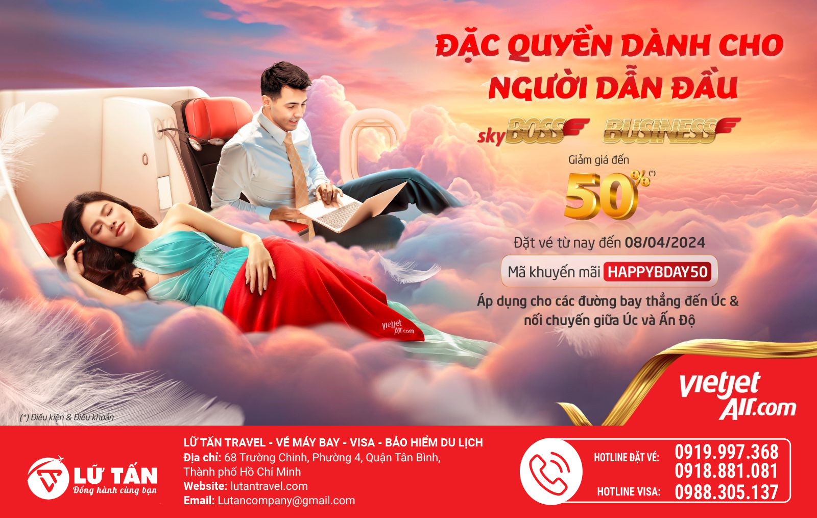 Giảm 50% giá vé cơ bản cho hạng vé Business và Skyboss khi nhập mã HAPPYBDAY50.