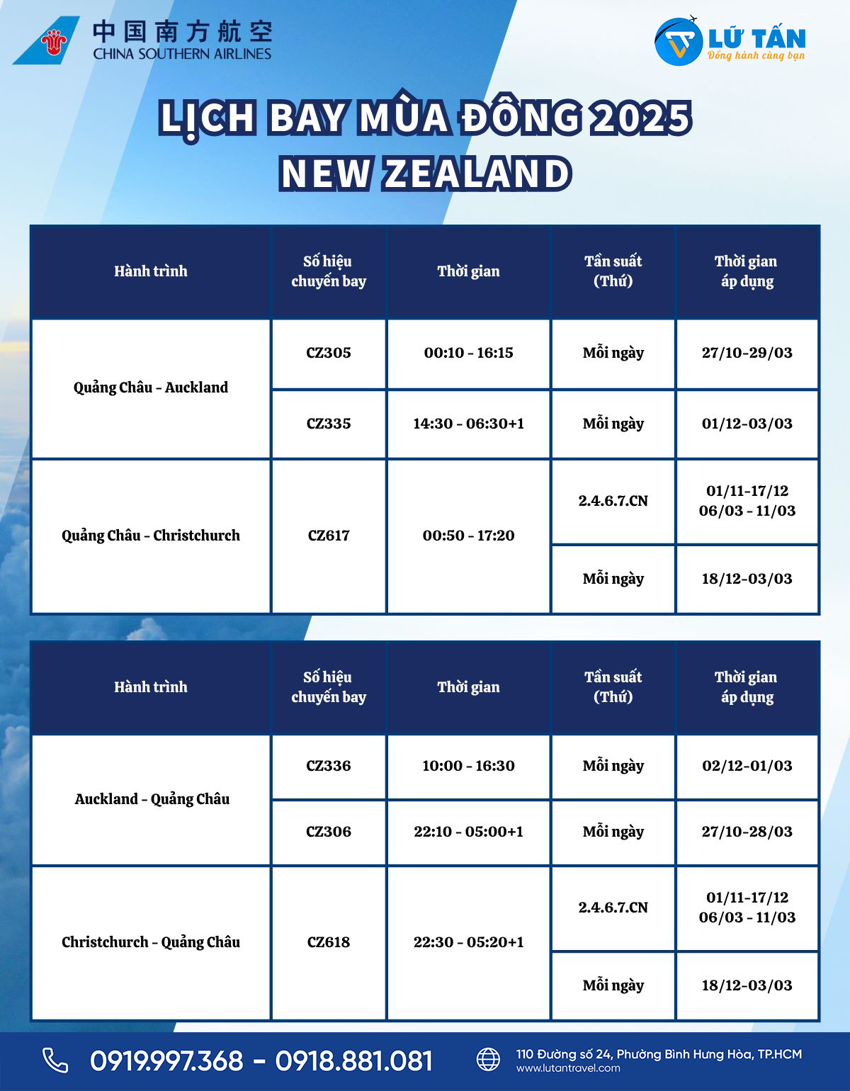 Để đặt vé China Southern Airlines với giá tốt nhất và đến New Zealand thật thuận tiện, hãy liên hệ ngay với Lữ Tấn Travel!