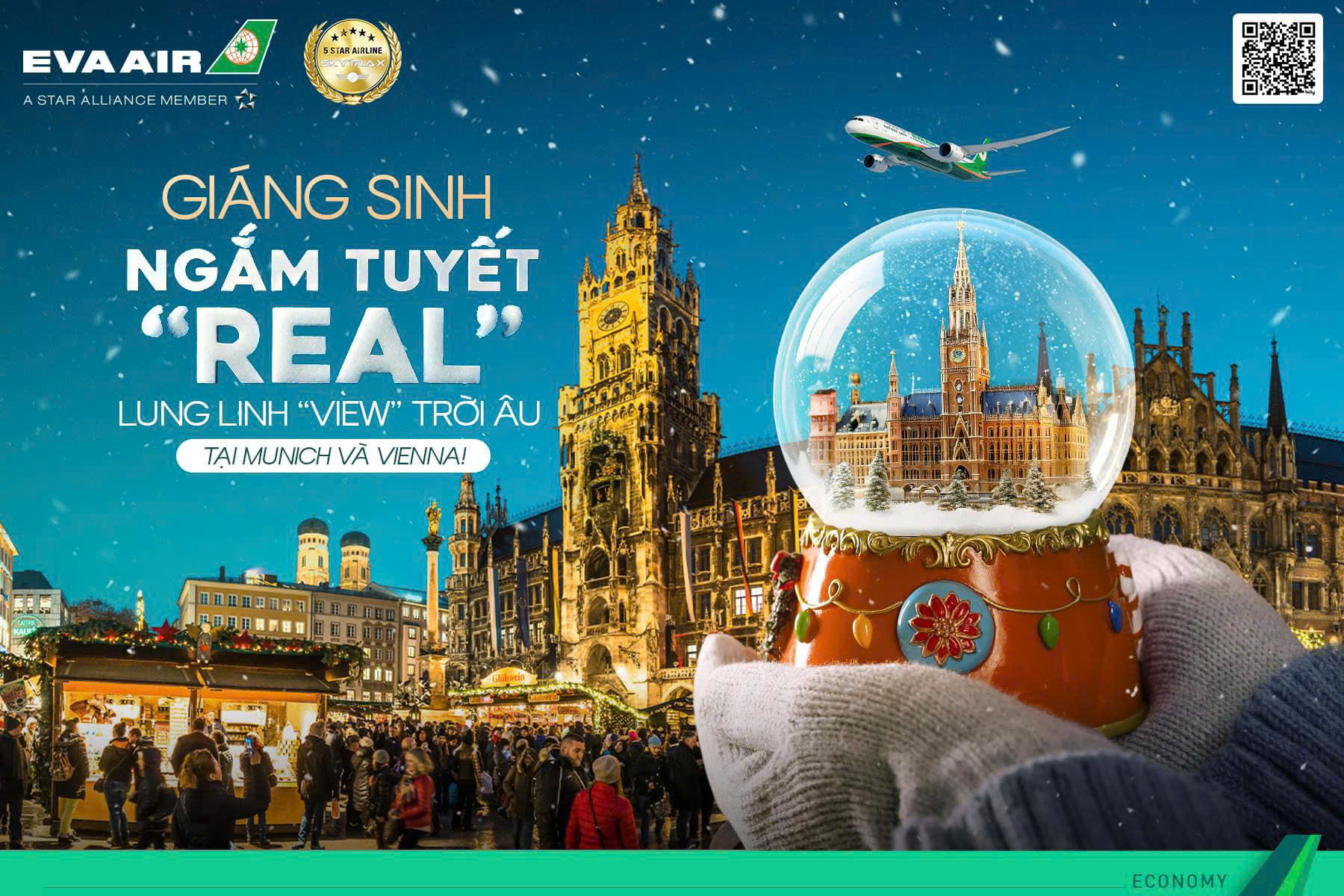 Mùa Giáng sinh năm nay, thay vì chỉ ngắm tuyết qua màn ảnh nhỏ, hãy cùng EVA Air bay thẳng đến Munich và Vienna để trực tiếp trải nghiệm không gian Giáng sinh tuyệt vời với tuyết rơi "real"! Chắc chắn những bông tuyết trắng mịn cùng những ánh đèn lung linh sẽ tạo nên những khoảnh khắc không thể nào quên.