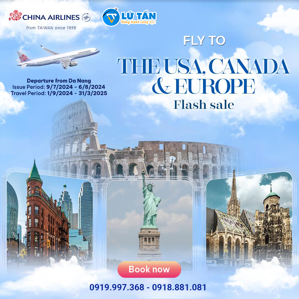 CHINA AIRLINES GIẢM ĐẾN 8% cho chuyến bay khởi hành từ Đà Nẵng đến Mỹ, Canada & Châu Âu (Một chiều/ Khứ hồi)