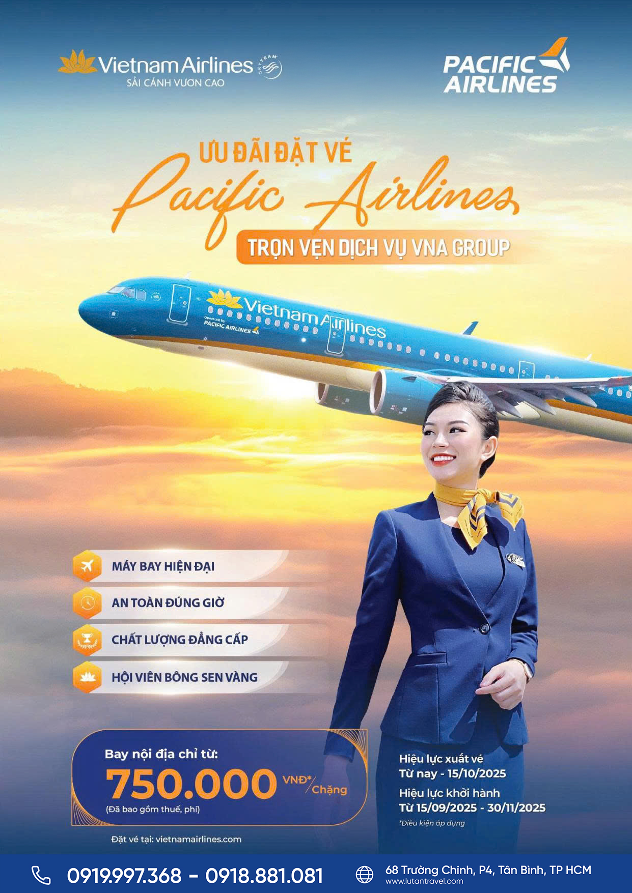 Pacific Airlines, thành viên của Vietnam Airlines Group, mang đến chương trình ưu đãi đặc biệt cho các đường bay nội địa, giúp bạn dễ dàng khám phá mọi miền đất nước trong mùa thu này với chi phí siêu tiết kiệm. Đây là cơ hội tuyệt vời để trải nghiệm dịch vụ bay chất lượng trong mạng lưới rộng khắp của VNA Group.