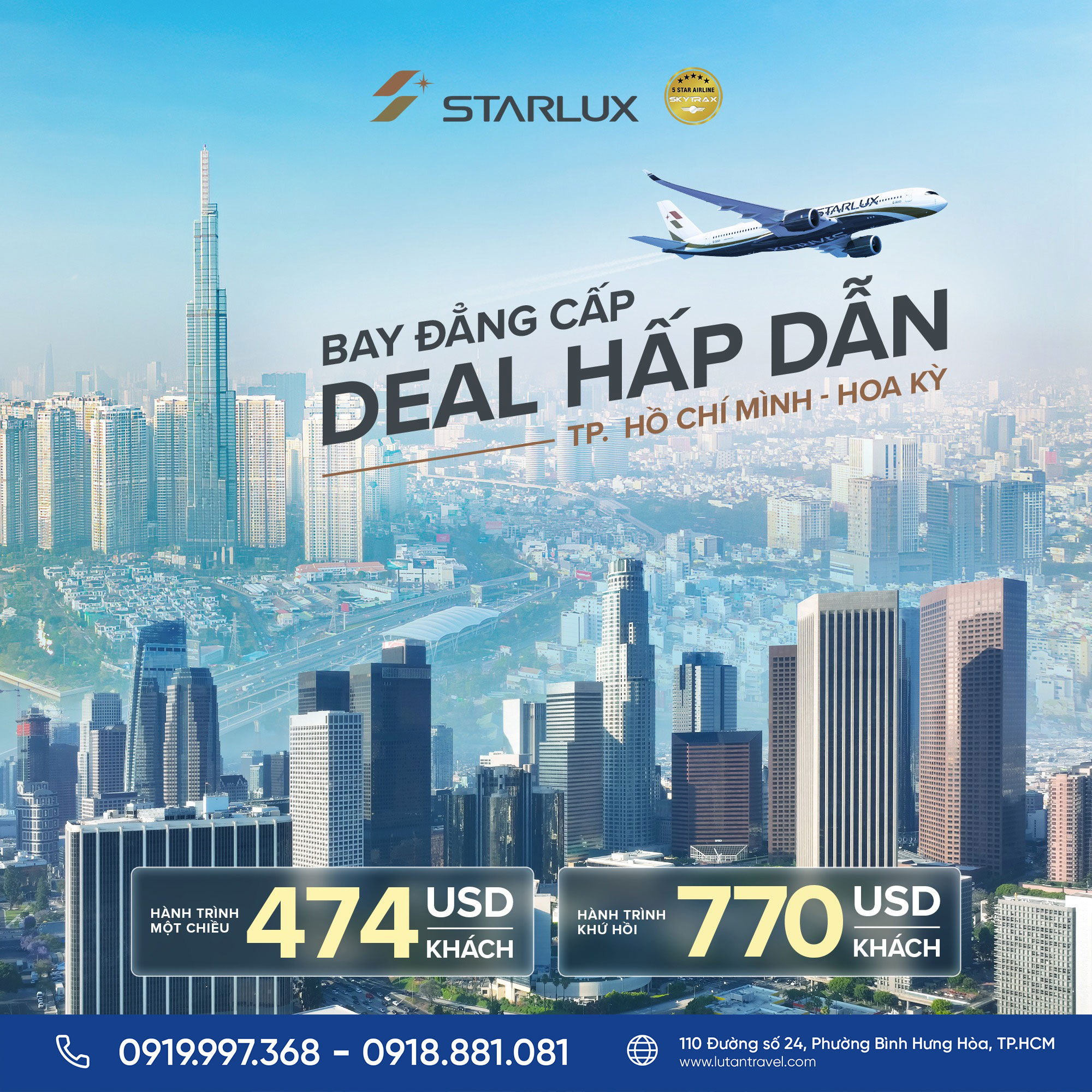 Cách đặt ưu đãi vé máy bay giữa TP.HCM đến Hoa Kỳ của hãng hàng không STARLUX Airlines tại Lữ Tấn Travel: