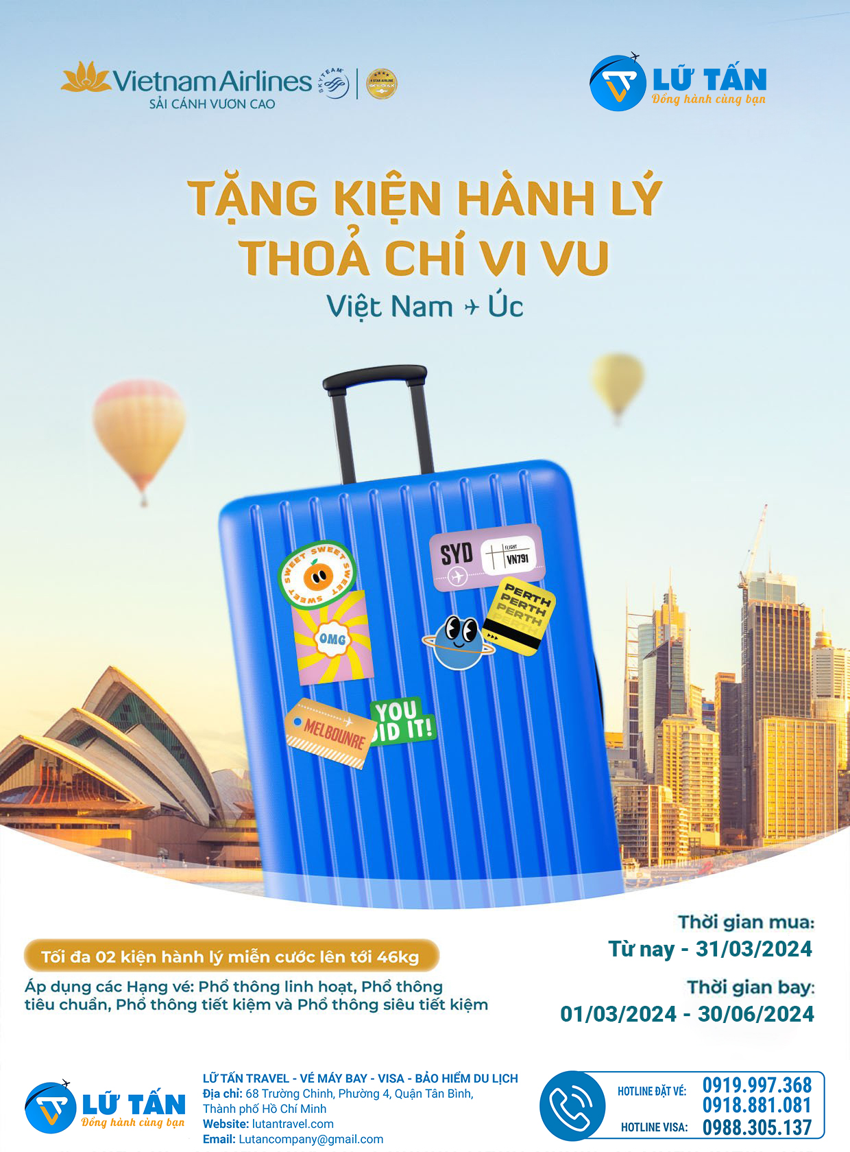 Chặng đường từ Việt Nam đi nước Úc xinh đẹp giờ đây sẽ tiết kiệm hơn với khuyến mãi tặng kèm kiện hành lý đến từ Vietnam Airlines