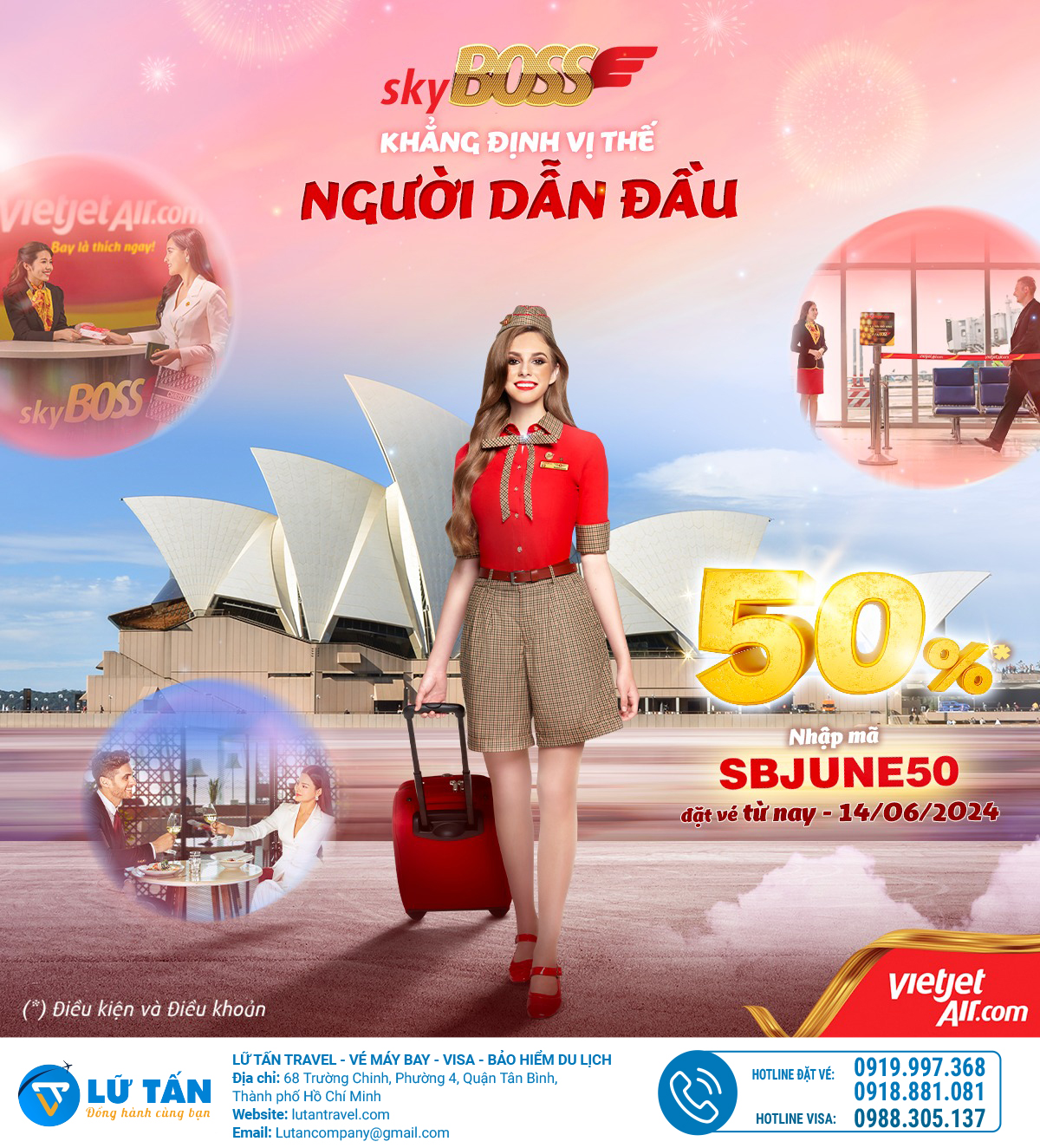 Ngoài những tiện ích hàng đầu và vô vàn đặc quyền ưu tiên, riêng tháng 6 này, bạn còn sở hữu thêm một đặc quyền ưu đãi lên đến 50%* giá vé khi bay cùng SKYBOSS.