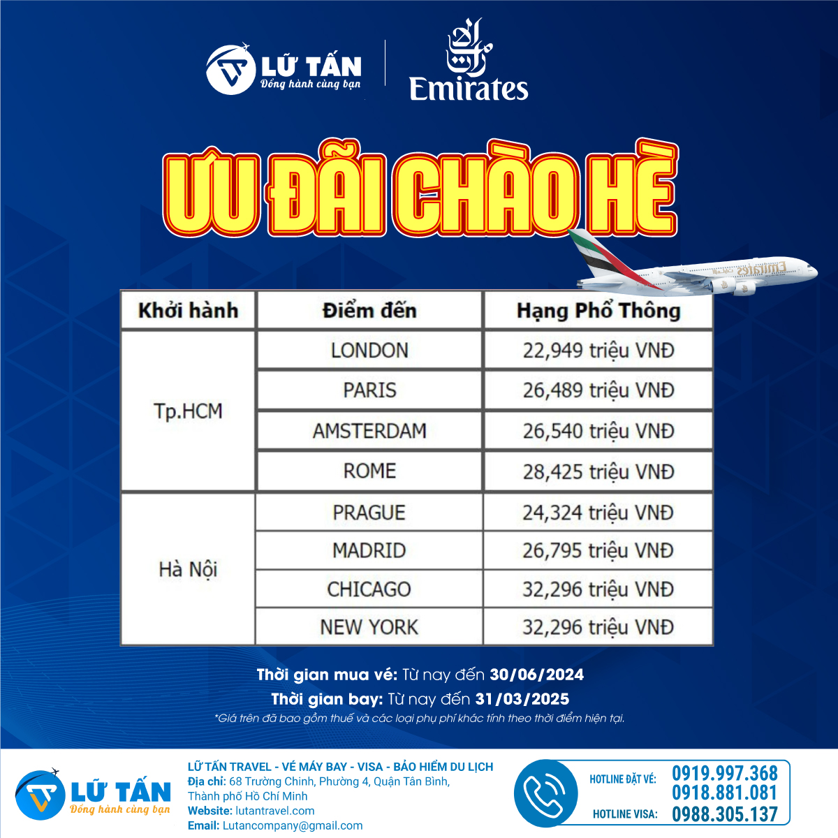 Tận hưởng mùa hè cực đã với ưu đãi từ Emirates cho các hành trình đi Châu Âu và Châu Mỹ