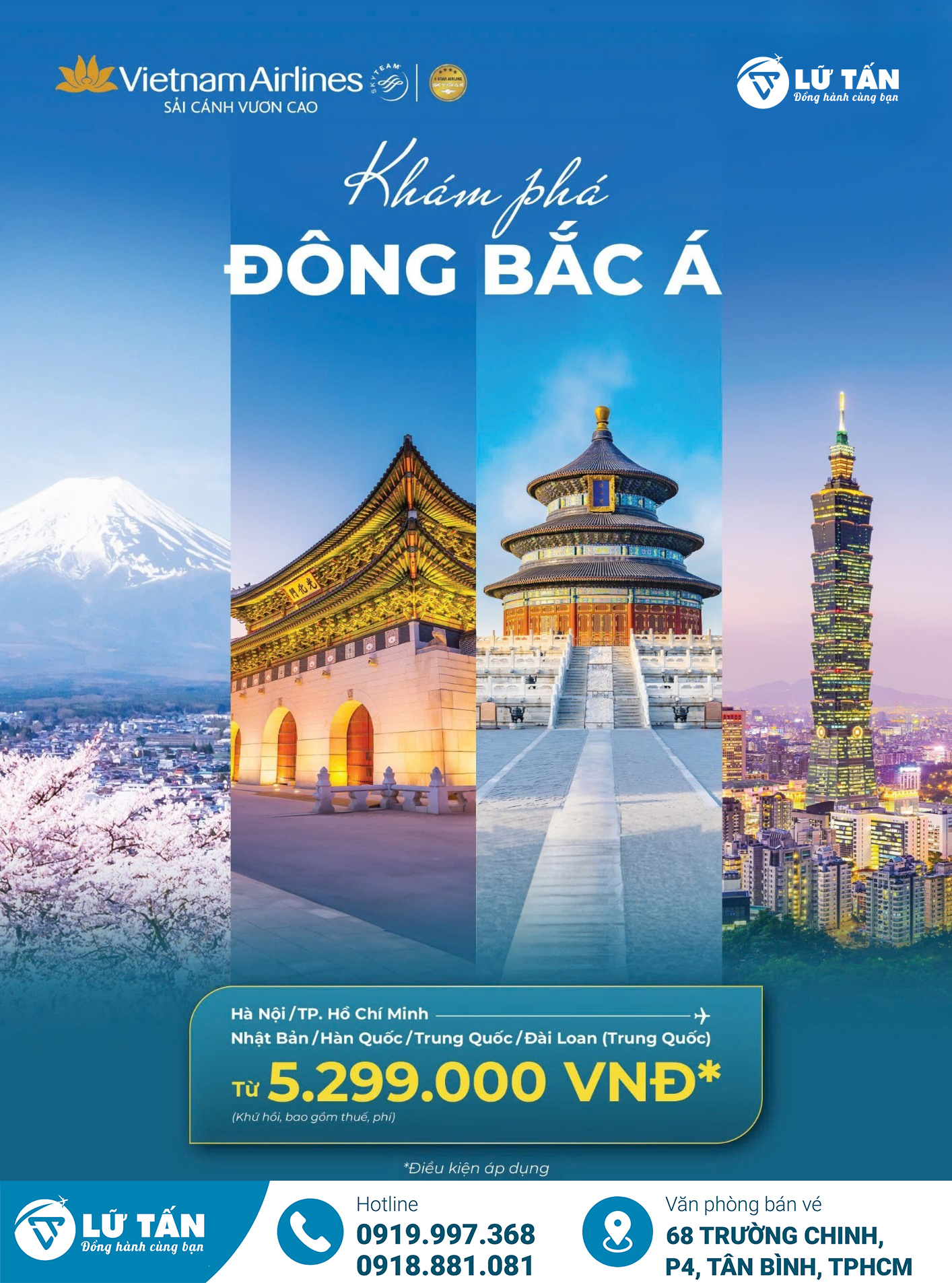 Mùa hè 2025 là thời điểm lý tưởng để bạn lên đường khám phá những điểm đến nổi tiếng bậc nhất Đông Bắc Á như Nhật Bản, Hàn Quốc, Trung Quốc, Đài Loan (Trung Quốc). Hòa mình vào nền văn hóa đặc sắc, thưởng thức ẩm thực tinh tế và tận hưởng không khí hiện đại xen lẫn truyền thống – tất cả đang chờ bạn trong chương trình khuyến mãi mới nhất từ Vietnam Airlines.