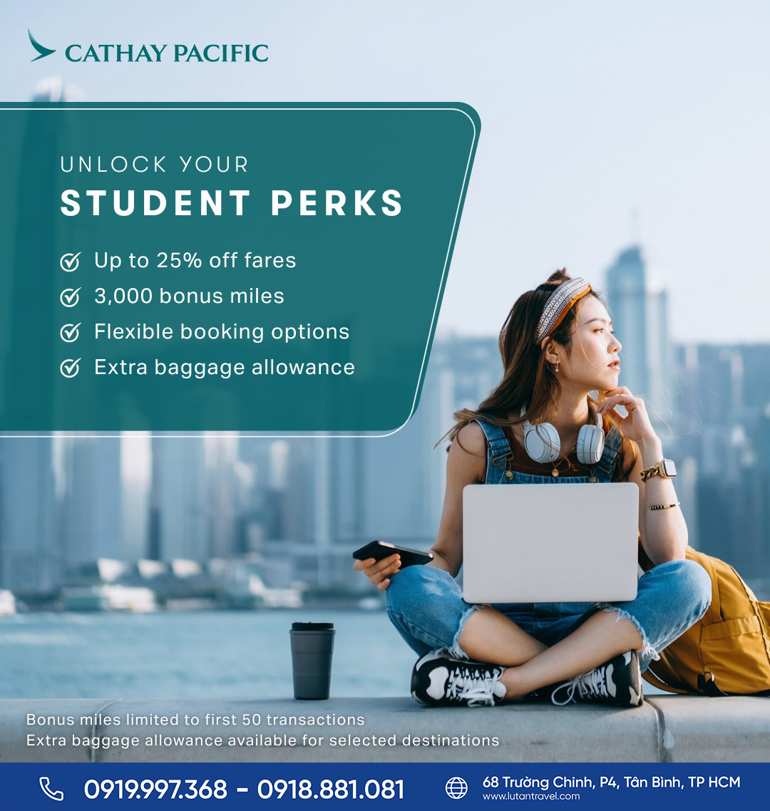 Cathay Pacific mang đến “Student Fares” với nhiều quyền lợi: