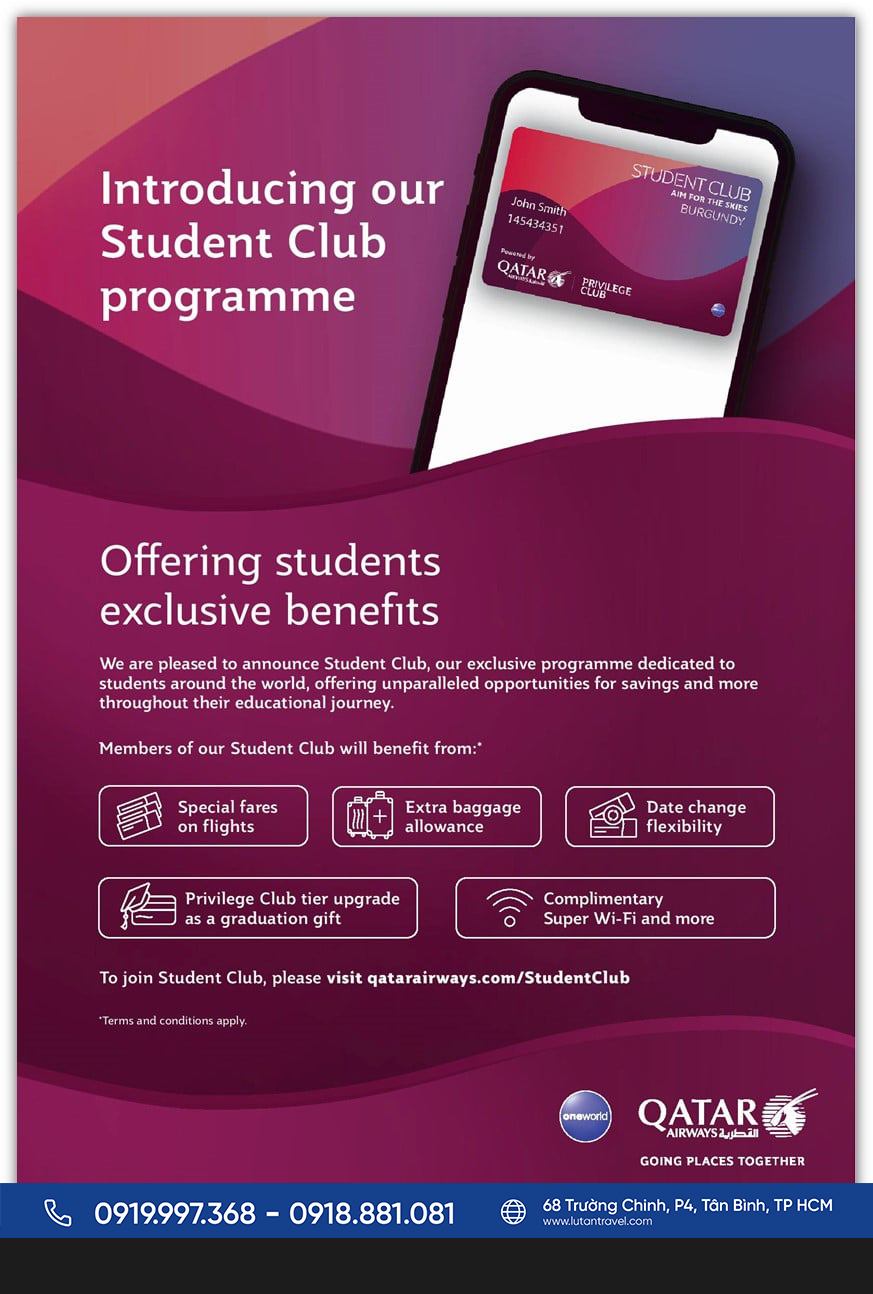 Qatar Airways mang đến chương trình "Student Club" độc quyền với ưu đãi lũy tiến: