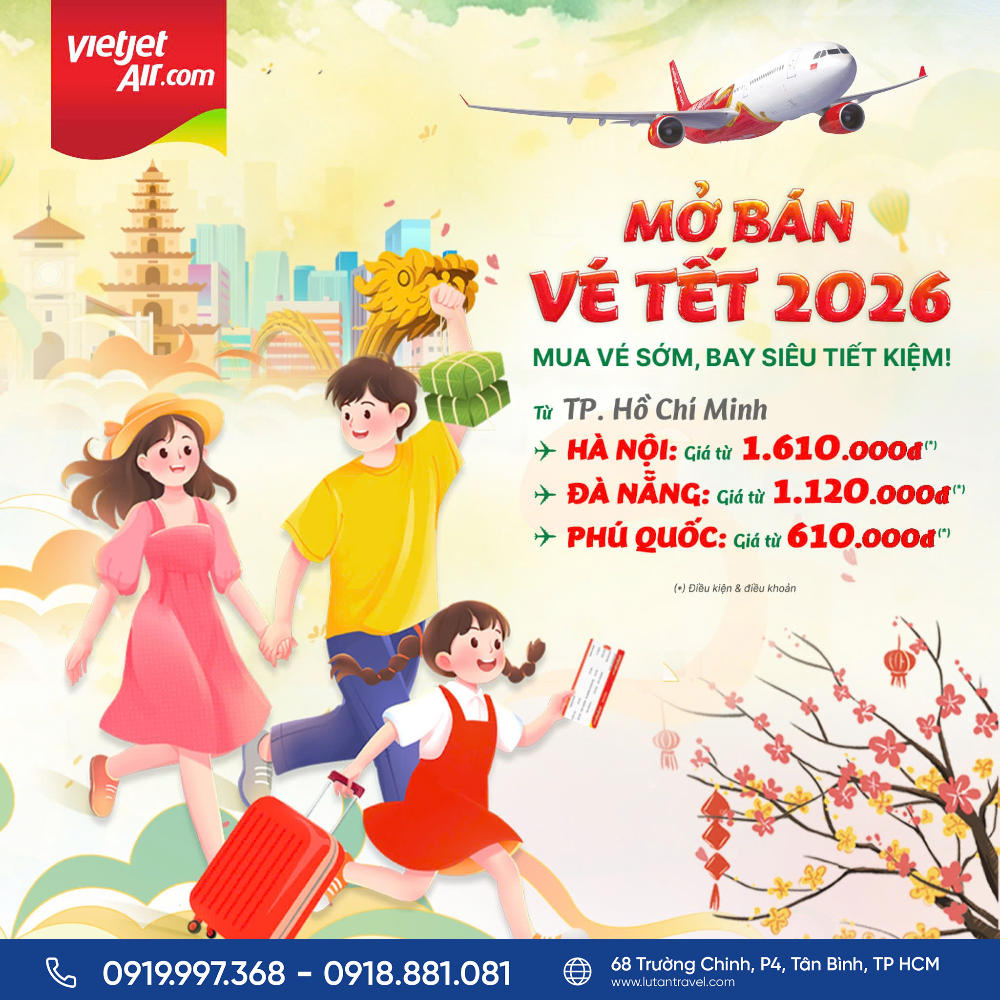 Không khí Tết đang đến gần và các hãng hàng không đã chính thức mở bán vé máy bay phục vụ nhu cầu đi lại của người dân. Đây là thời điểm vàng để bạn lên kế hoạch cho chuyến về quê, đoàn tụ cùng gia đình hoặc du xuân. Hãy nhanh tay đặt vé sớm tại Lữ Tấn Travel để đảm bảo có được chỗ và mức giá tốt nhất cho hành trình của mình.