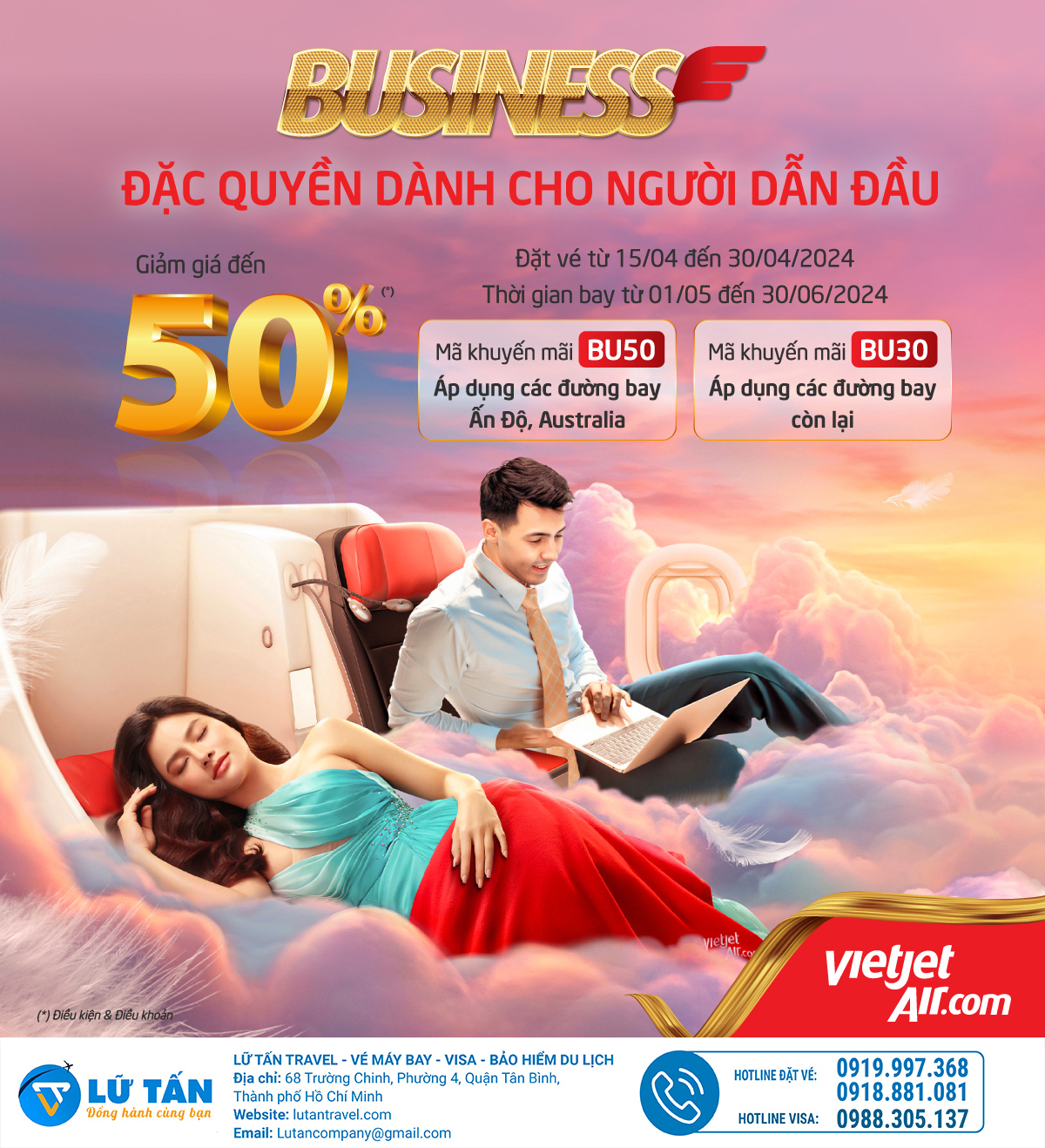 Chào đón Đại lễ 30/4 và 1/5, Vietjet tặng tất cả hành khách ưu đãi hấp dẫn cho hạng vé Business: