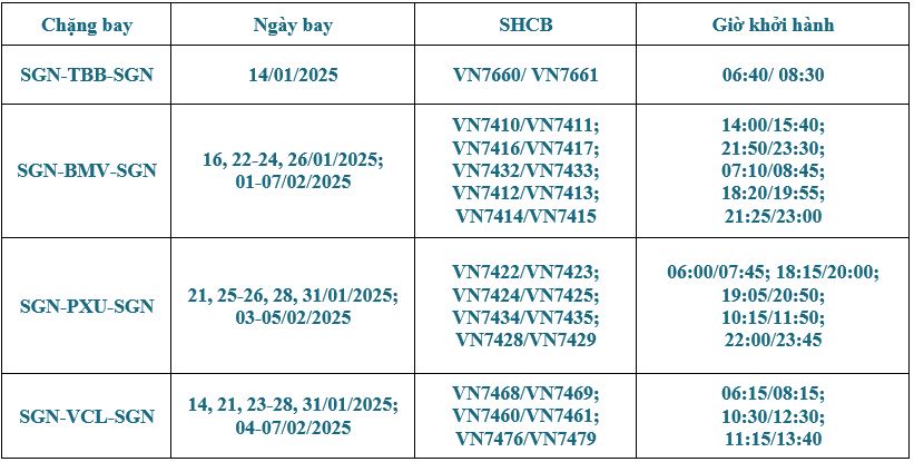 - SGN - TBB - SGN (TP.HCM - Tuy Hòa)